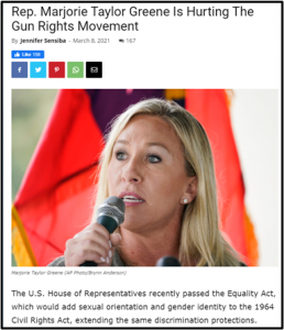 (The Truth About Guns’ Jennifer Sensiba attacked Georgia Congresswoman Marjorie Taylor Greene, while Greene was doing all she could to stop H.R. 8 on the floor of Congress!)