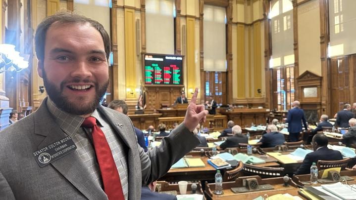(Senator Colton Moore on the Georgia Senate floor, celebrating the passage of SB-163. Colton asked us to thank the members of GGO Nation for your calls and emails in support of this bill)