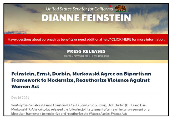 (A screengrab of Dianne Feinstein’s December press release, bragging about the support that her gun control bill is receiving from Republicans Joni Ernst and Lisa Murkowski.)