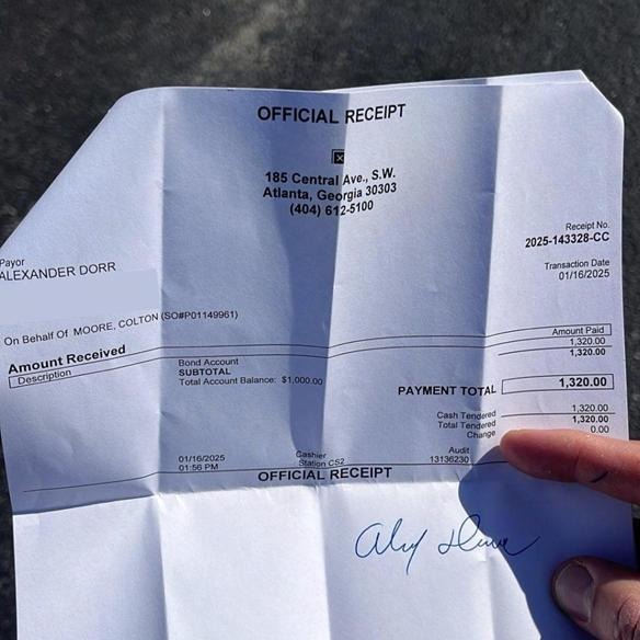 (The receipt I was given for posting Senator Moore’s bail!)
