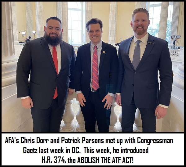 Our national affiliate, the American Firearms Association, has worked with Congressman Matt Gaetz to file H.R. 374 which would abolish the ATF forever!